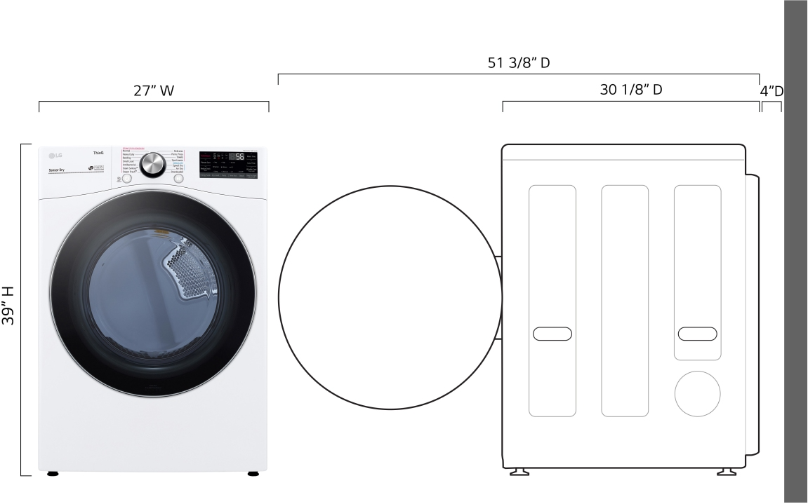 | Dryer Features | Noise Reducing Technology, Reversible Door Hinge, Wi-Fi Capable, Front Controls, Sensor Dry, Damp Alert, Timed Dry, Control Lock, Reduce Static, Remote Diagnostics, Interior Light, Fixed End-of-Cycle Signal, Adjustable Legs, Digital Cycle Countdown |