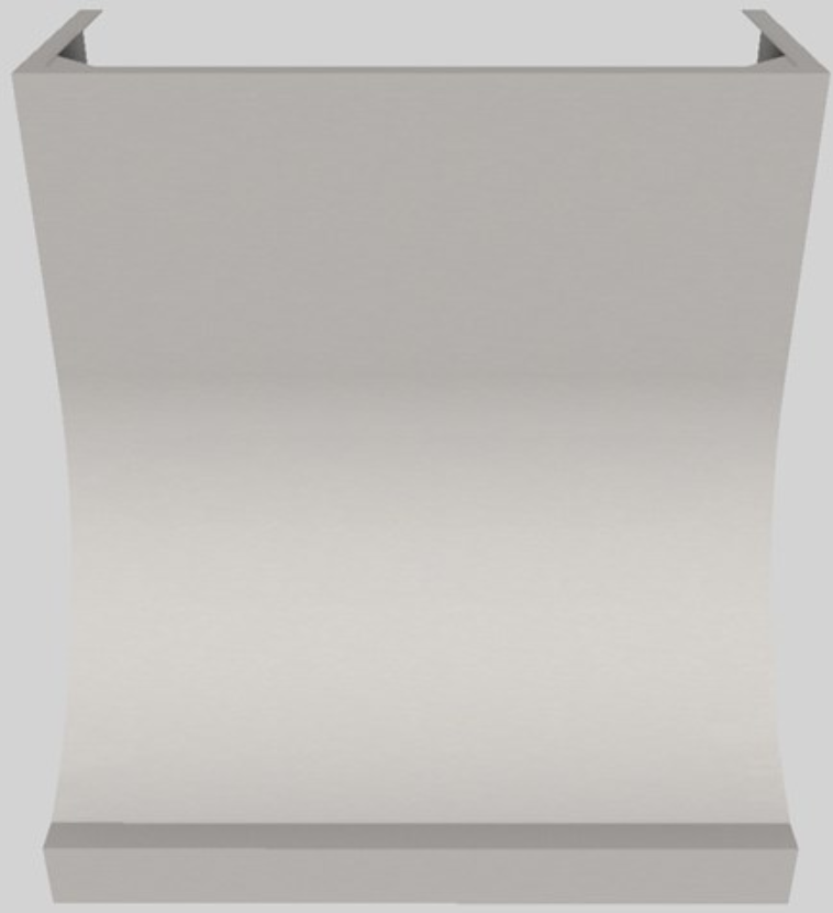 Choose vertical ends that are perfect for installation between cabinets, or concave ends for a French Country look. Heat lamps may also be added to selected models. Click on the models for a list of our base model numbers for standard sizes; simply select the model you need, and then specify the finish (painted, stainless steel, real brass, real copper, or hammered copper). Recommended mounting height is 30" above the cooking surface. Matching wall mount duct covers (sold separately) are available in standard sizes for 8', 9', and 10' ceiling heights or in custom sizes. All Vent-A-Hood products are suitable for use in damp locations (outdoor applications such as a covered patio) when installed in a GFCI protected branch circuit.